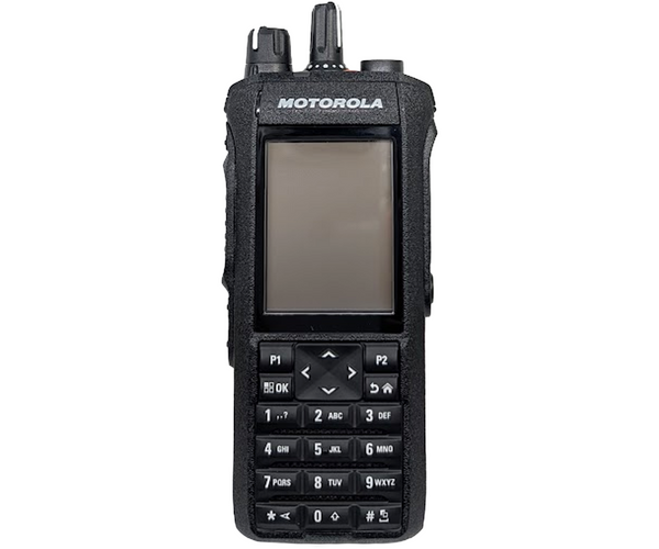 This open box Motorola R7 VHF Capable digital two-way radio is a cutting-edge communication tool designed for teams in demanding environments. Featuring advanced audio processing, rugged durability (IP66/IP68), and comprehensive connectivity options, the R7 offers seamless communication. This unit includes a full keypad for enhanced functionality.